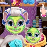 Let's start a real makeover with Angela and her cute baby. At first, start applying the facial masks. Then finish the spa treatment and have fun creating new looks in the makeup session. Choose what you think suits Angela and the baby the best to dress up them, to transform them into the best beautiful cat. Have fun!