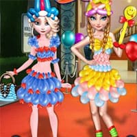 Frozen Sisters Elsa and Anna are fashionistas. They often share their new dress style on Facebook. However, there is no latest outfits in magazine recently. They decided to try balloon style and share their photos on Facebook. They prepared many kinds of balloon dresses. Help them to dress up. Don't forget accessory is a must for a perfect look.